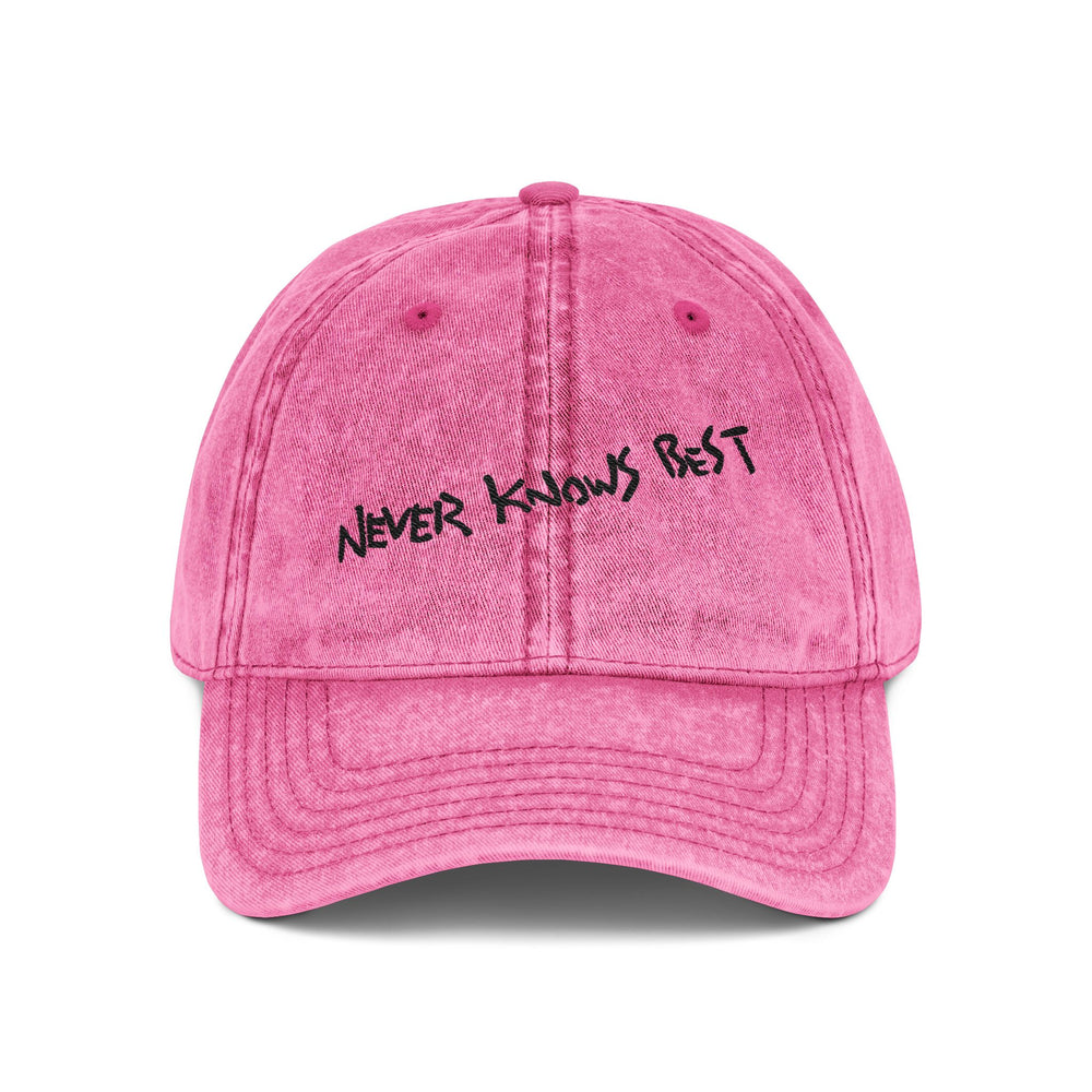 FLCL — "Never Knows Best" Distressed Red Dad Hat