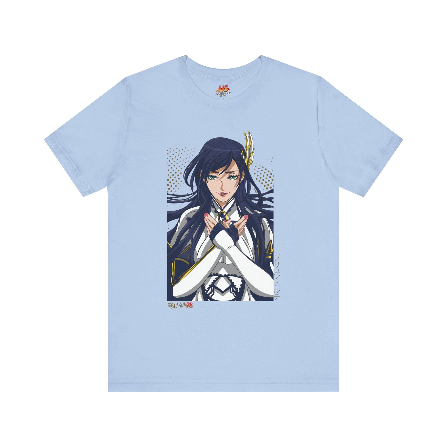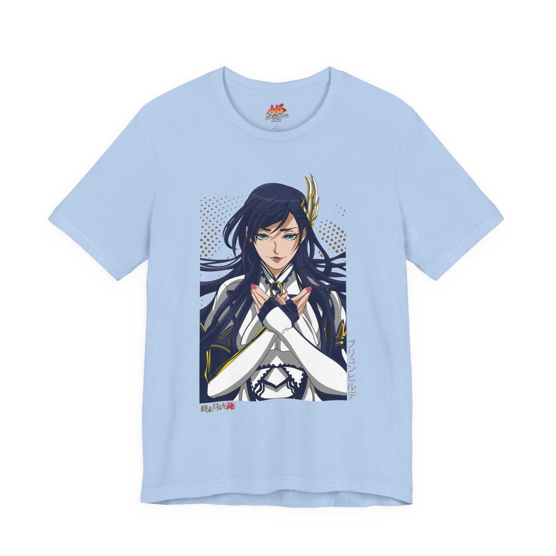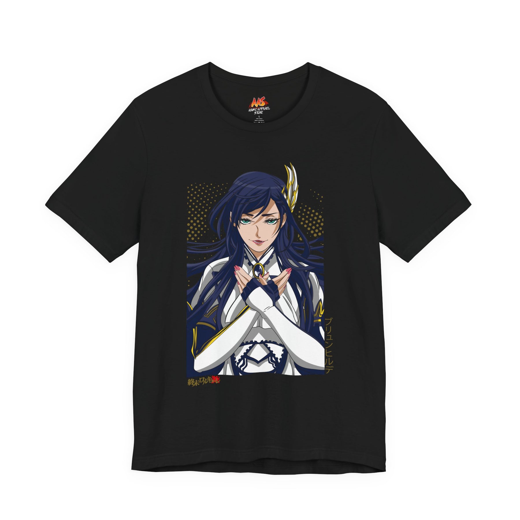 With elegance sharper than any blade and eyes that see through gods and mortals alike, this design captures Brunhilde in her iconic poise. Dressed in her divine battle uniform, framed by flowing hair and golden accents, she stands as the mastermind behind humanity’s final stand in Record of Ragnarok. Whether you’re drawn to her beauty, her brilliance, or that quiet “I will ruin your eternity” energy, this piece is for those who lead with style and strategy.
