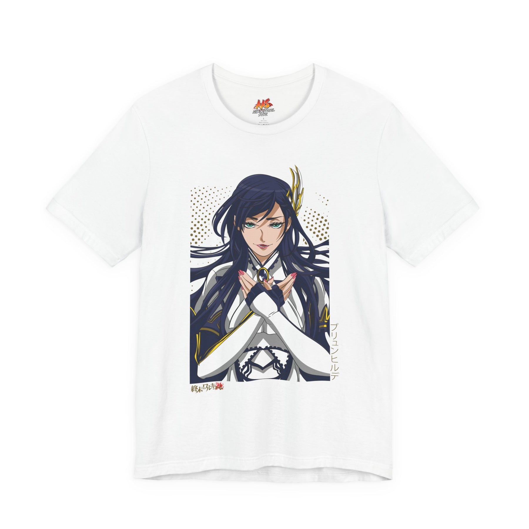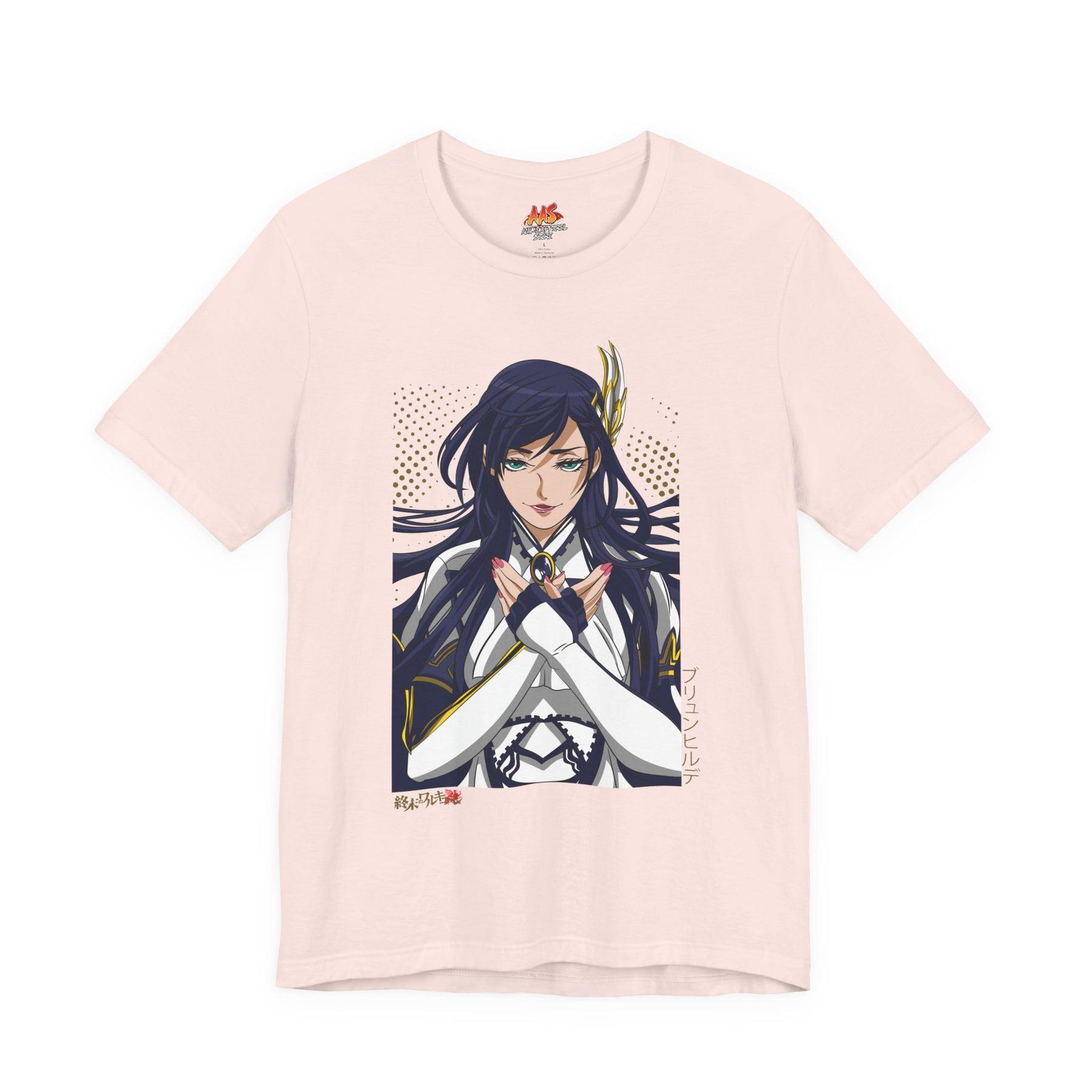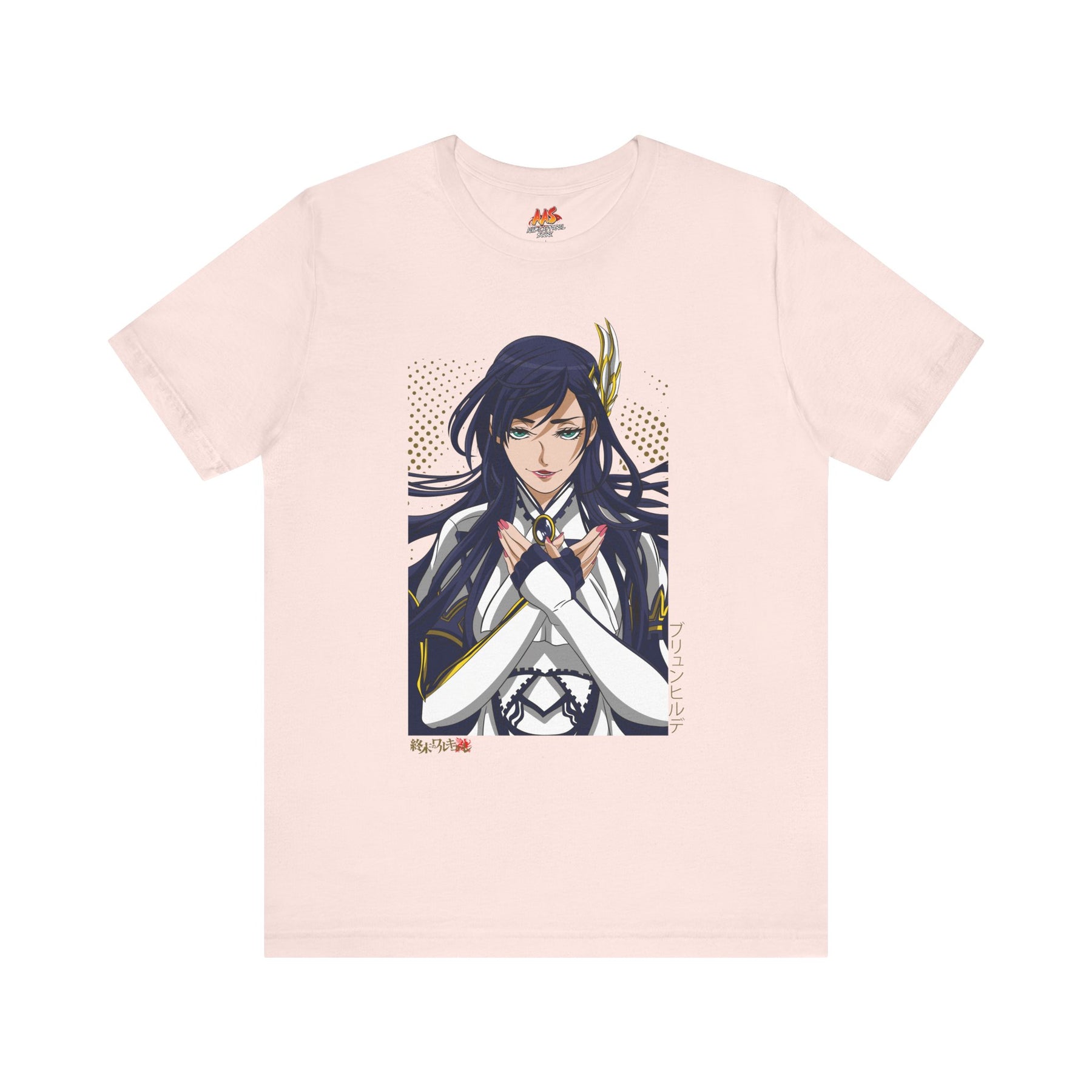 With elegance sharper than any blade and eyes that see through gods and mortals alike, this design captures Brunhilde in her iconic poise. Dressed in her divine battle uniform, framed by flowing hair and golden accents, she stands as the mastermind behind humanity’s final stand in Record of Ragnarok. Whether you’re drawn to her beauty, her brilliance, or that quiet “I will ruin your eternity” energy, this piece is for those who lead with style and strategy.