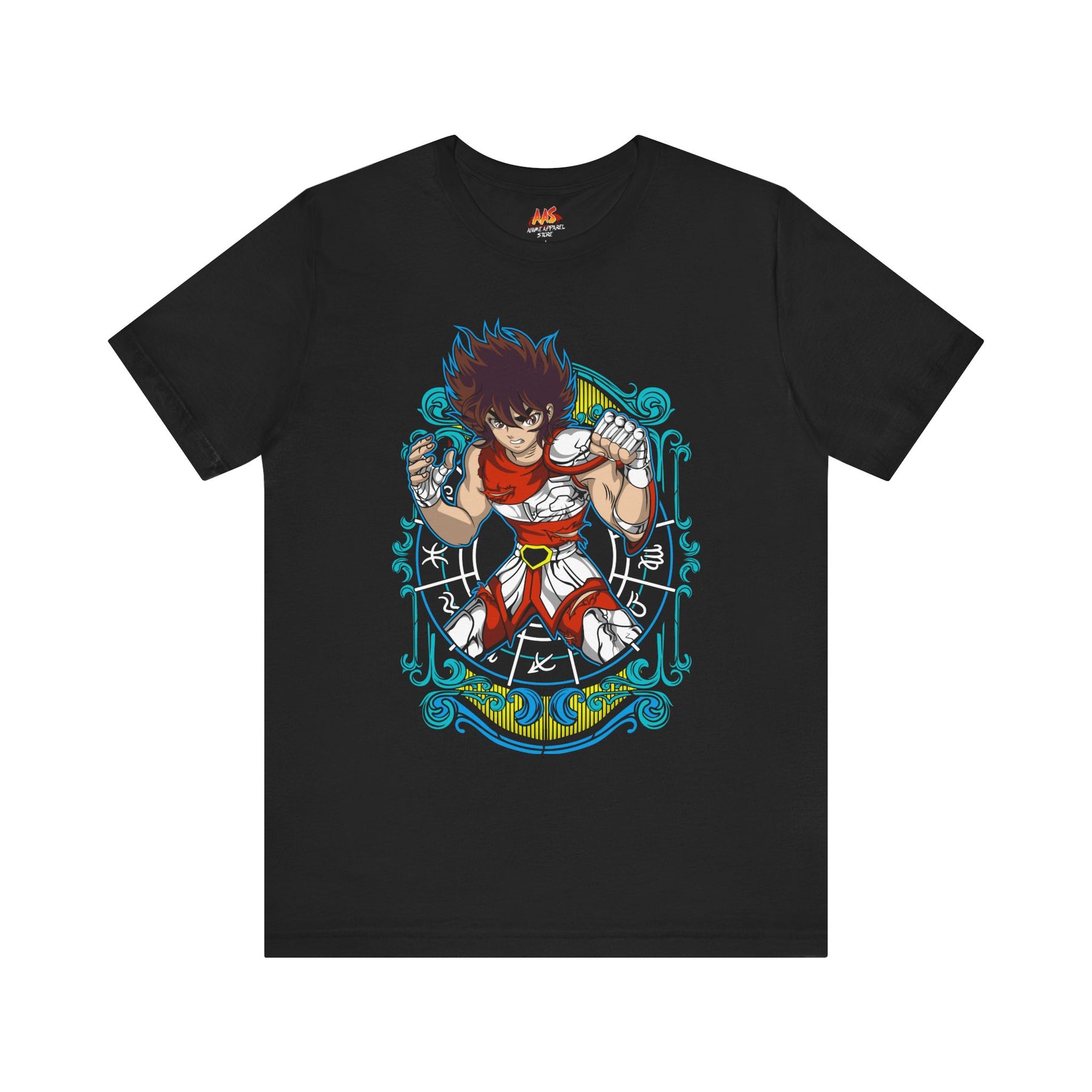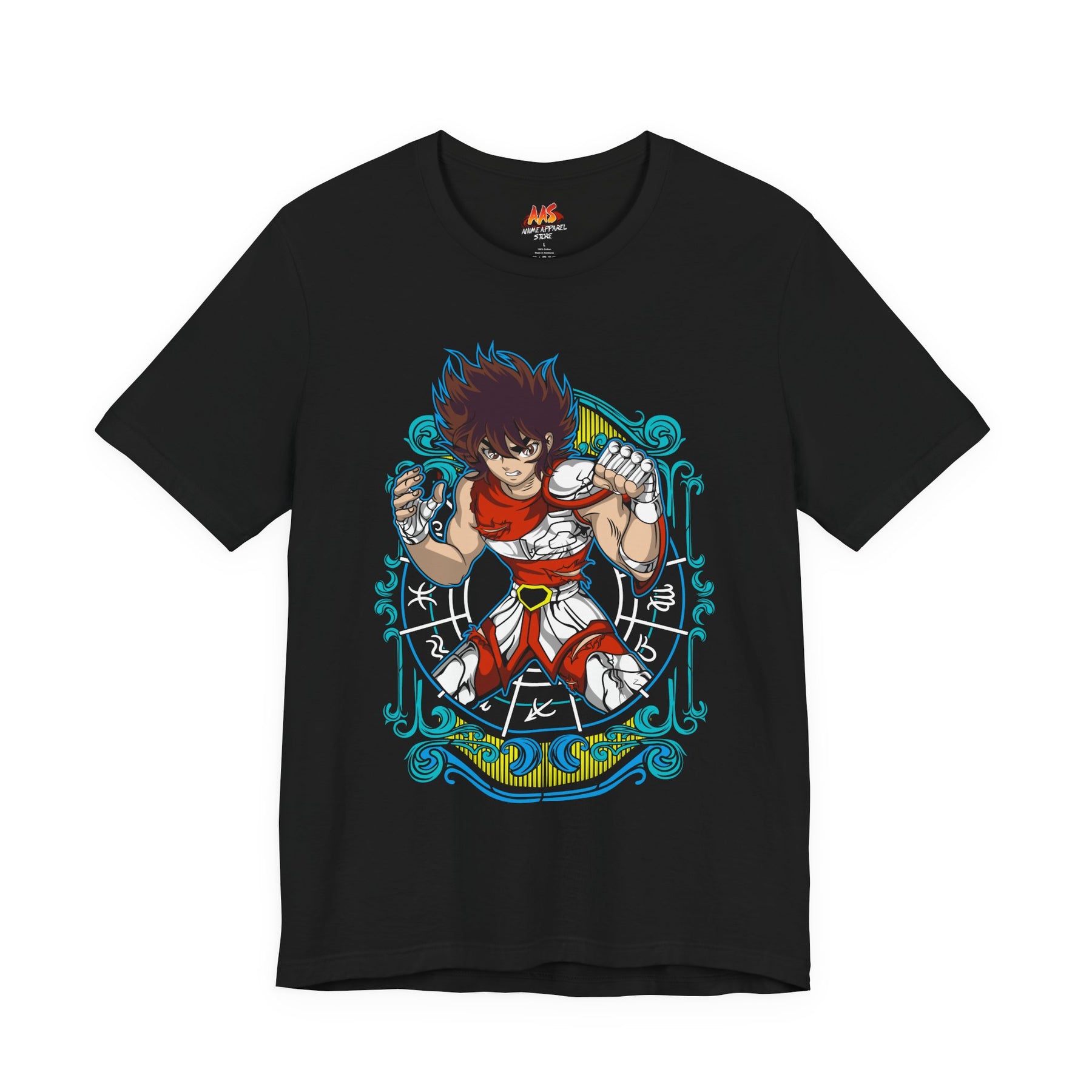 When you’ve taken enough hits to shatter your cloth and still get back up—that’s Pegasus Seiya. This high-impact design features the Bronze Saint mid-battle, his armor torn but his Cosmo raging like wildfire. Surrounded by celestial script and temple flourishes, this piece is an homage to Seiya’s indomitable will as he faces down gods and Gold Saints alike.