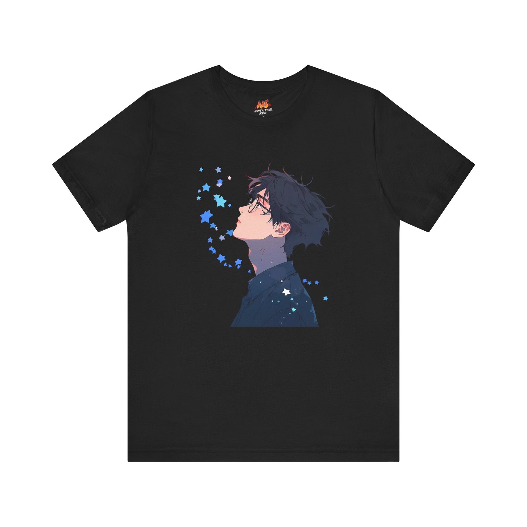“Midnight Reverie” captures the quiet gravity of the introspective mind. Featuring a soft palette of blues, purples, and galactic hues, this design evokes the bittersweet energy of late-night anime epilogues and soundtrack-fueled montages. A lone figure, lost in thought, surrounded by stars—but not looking at them. He’s looking beyond.